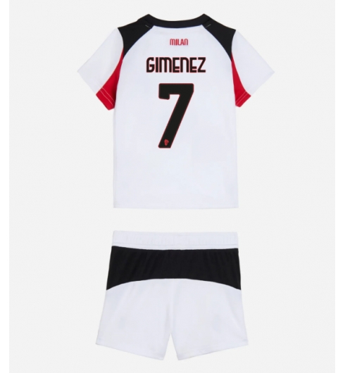AC Milan Santiago Gimenez #7 Replika Bortatröja Barn 2025-26 Kortärmad (+ byxor)